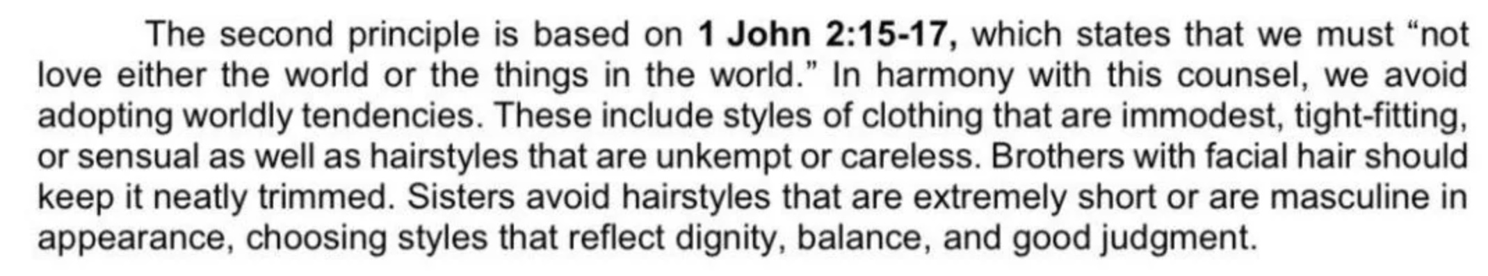 This is a surprising statement, considering how pedantic and controlling Watchtower is regarding dress and grooming. Ironically, prior to this quote, the article includes the following "detailed lists of regulations" against styles that are unisex, provocative, overly casual, revealing or popular fashion.