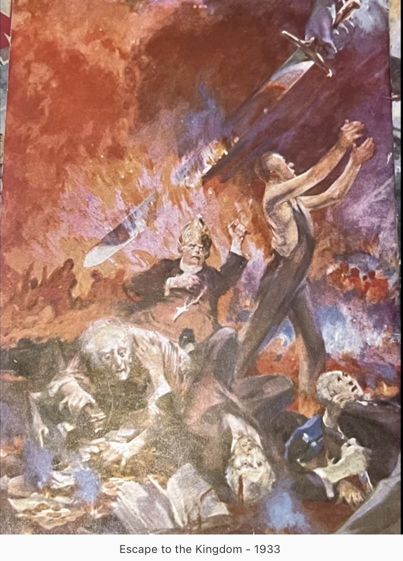 “Sooner or later, in our study sessions, my students and I would get to the section in the book with the chapter on Armageddon—with its two-page centerfold illustration of fire falling from the sky and people dying, reeling into the gaping earth. As I began to explain these things, in a new tongue, in a new place, I started to hear what I was saying, for the first time: “So because you were born here, and I was born into my world, God’s going to kill you and your family and friends and associates, but not me. Because you were educated differently, in a different culture, and therefore have a different explanation for life, for spirituality, for goodness, for meaning, you will die, and I will live. This is because I was taught, week in, week out, from the time I was five, that this all made perfect sense. And you were not.” (Open book to Armageddon centerfold.)