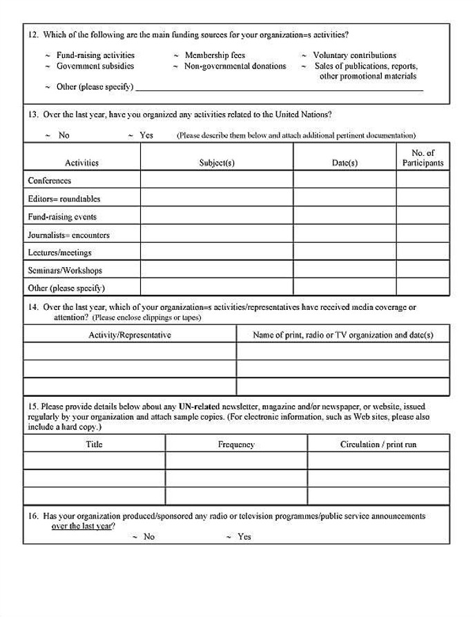 Una copia de la solicitud de 1991 que llenó la Watchtower demuestra que había un requisito anual de proporcionar información a las Naciones Unidas. Indica:
