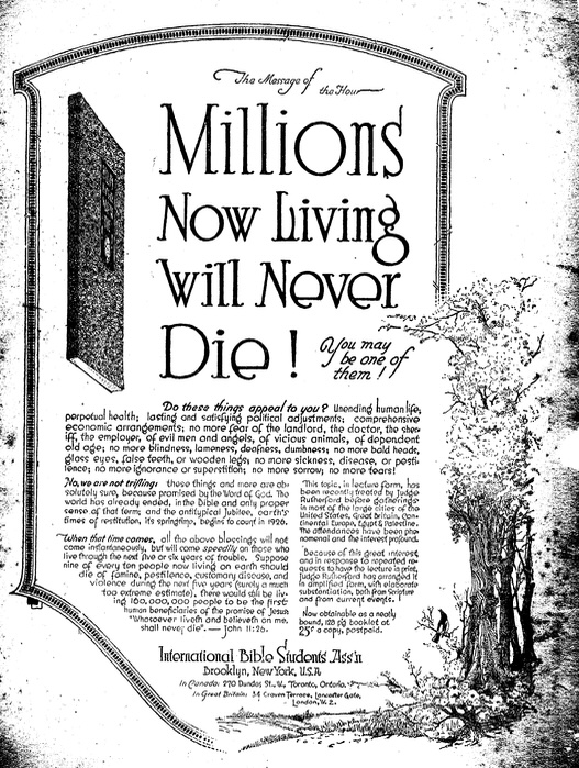 1925 - "Millions Now Living Will Never Die!"