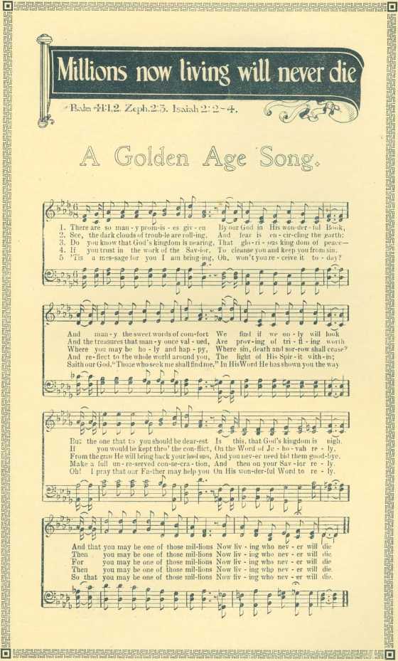 "The Message of the Hour. Millions Now Living Will Never Die! You may be one of them!"